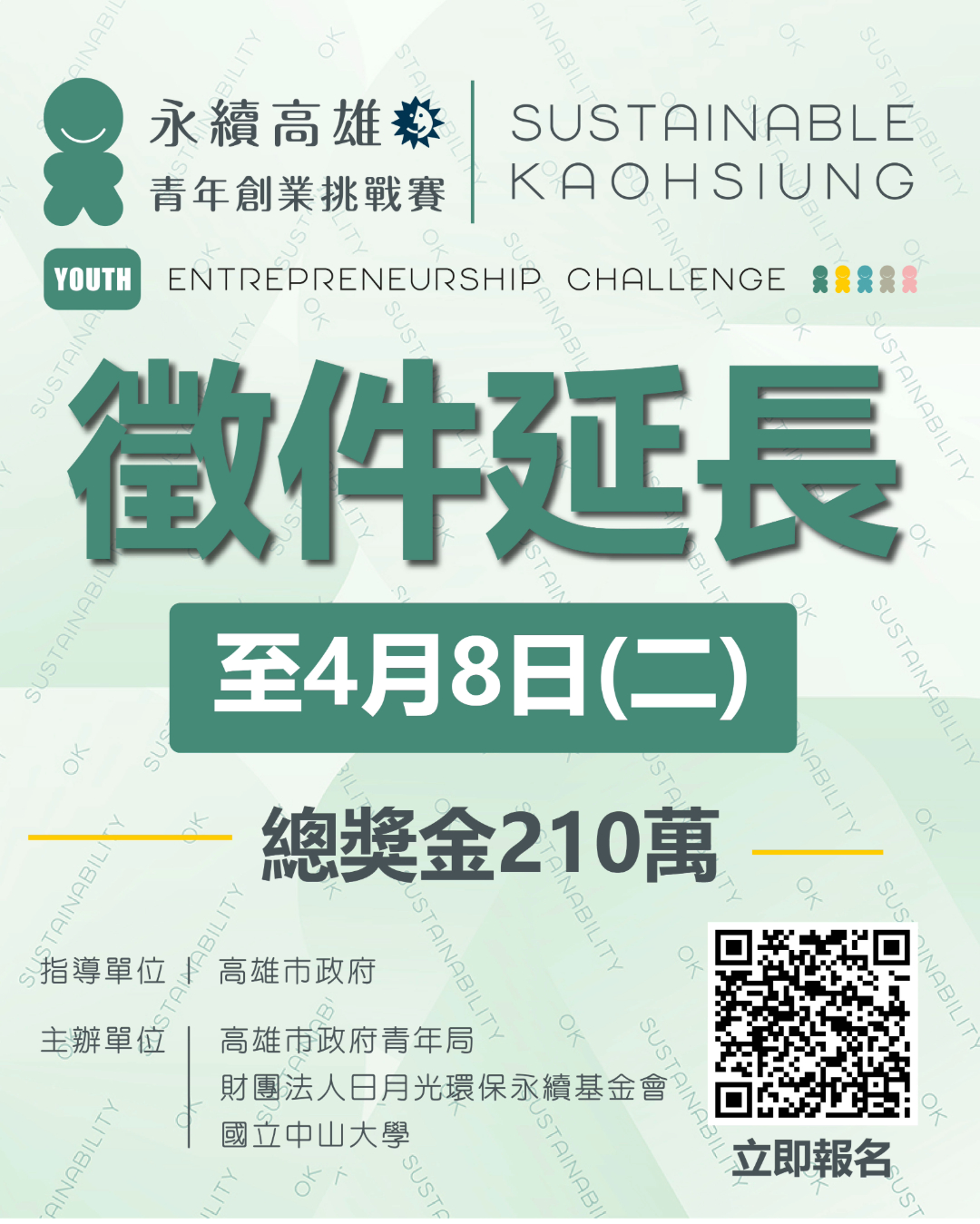 【轉知】「永續高雄:青年創業挑戰賽」延長徵件