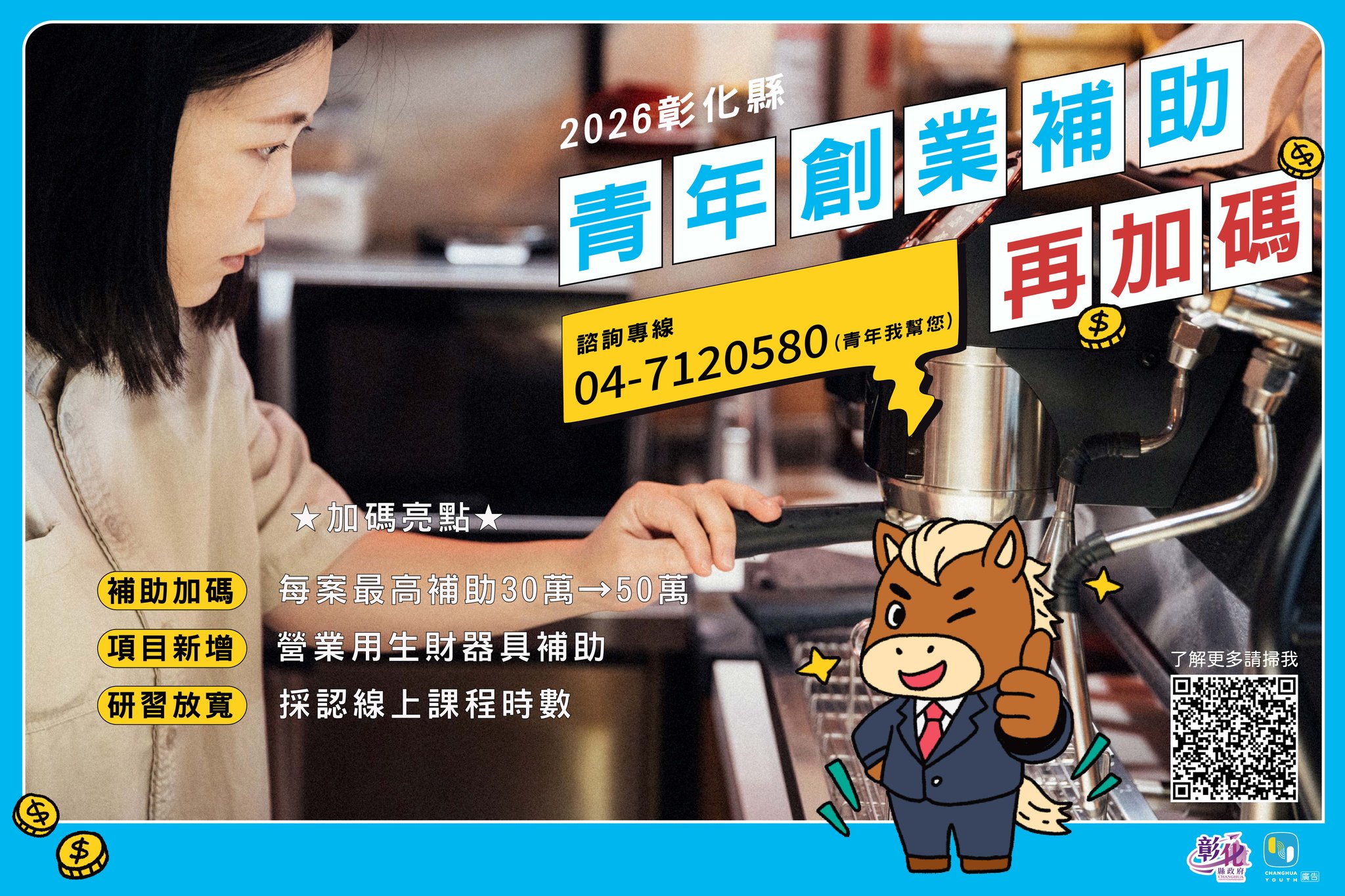 - 詳情請洽彰化縣政府青年諮詢專線 04-7120580 (青年我幫您)
